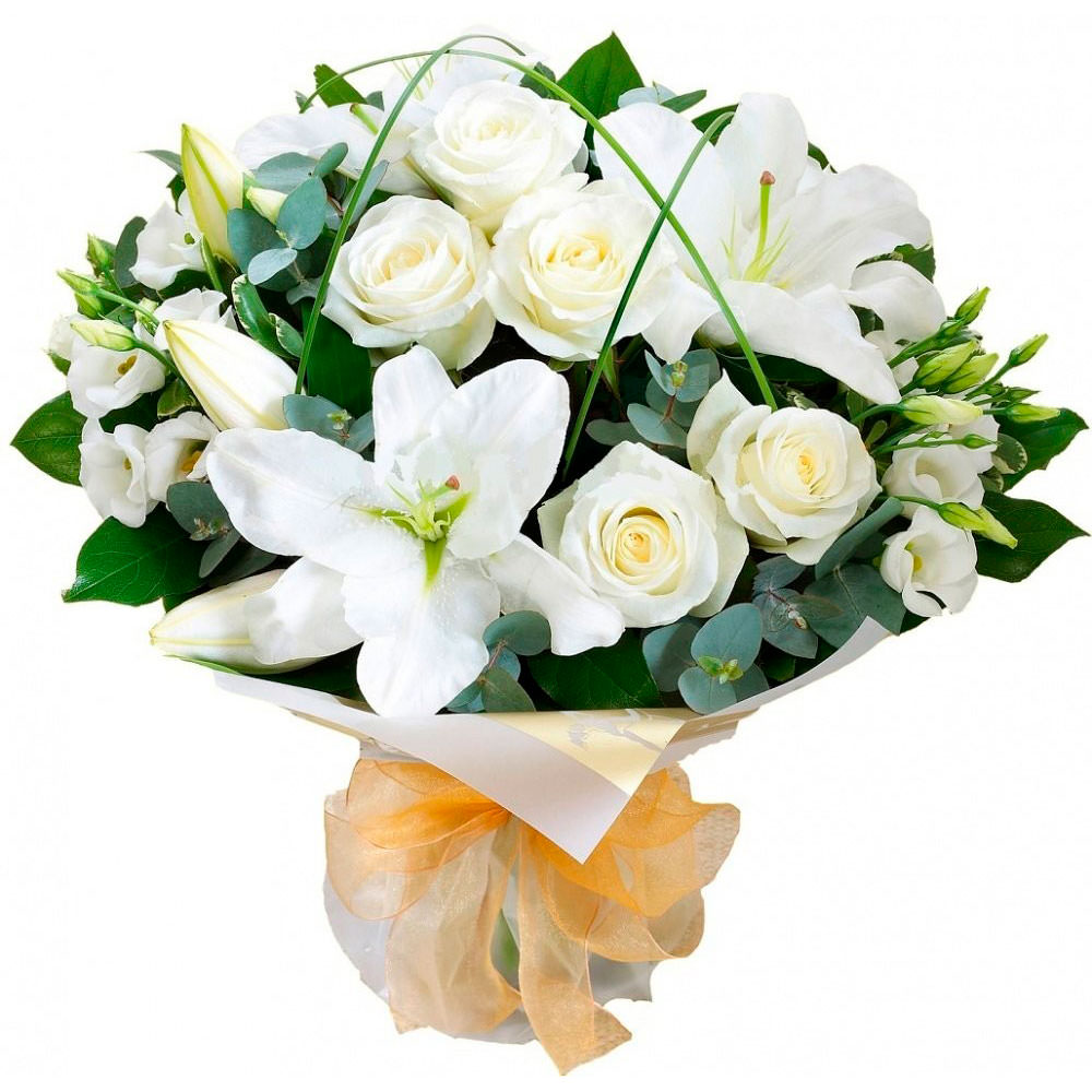 На фото представлен образец. Объем букета зависит от выбранного вами размера. Точное количество цветов и цветовую гамму вы можете уточнить у менеджера по телефону.